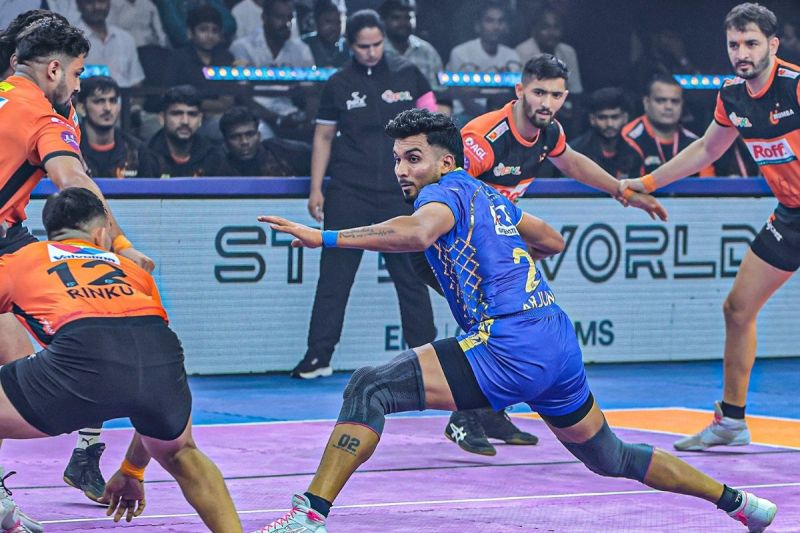 PKL 12 U Mumba vs tamil thalaivas Match Highlights: प्रो कबड्डी लीग सीजन 12 में यू मुंबा ने रविवार को तमिल थलाइवाज के खिलाफ 36-33 से रोमांचक जीत दर्ज की। विश्वनाथ स्पोर्ट्स क्लब में अर्जुन देशवाल के सुपर 10 ने थलाइवाज को पूरे मुकाबले में मजबूती दी, लेकिन अजीत चौहान और अनिल मोहन ने शानदार प्रदर्शन करते हुए मुकाबले का रुख पलट दिया। एक समय था, जब यू मुंबा 9 अंकों से पिछड़ रही थी, लेकिन टीम ने शानदार वापसी करते हुए तीन अंक से मुकाबला अपने नाम किया।