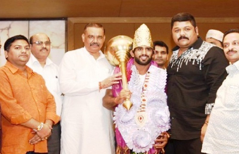 सोना जीत भारत लौटे बजरंग पुनिया को स्वर्ण मुकुट से किया गया सम्मानित