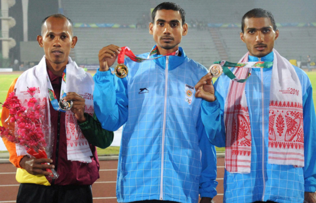 एथलेटिक्स में अजय कुमार (1500 मी), चित्रा पी यू (1500 मी), रंजीत महेश्वरी (तिहरी कूद), सुमन देवी (भाला फेंक महिला), ओमप्रकाश ङ्क्षसह ( गोला फेंक पुरुष), जोना मुर्मु ( 400 मी बाधा दौड़ महिला) और धरुन ए (400 मी बाधा दौड़ पुरुष) ने स्वर्ण जीते।