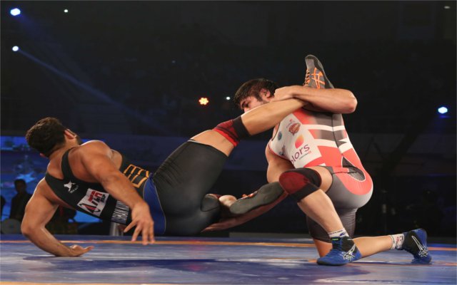पहले मैच में रियो ओलंपिक के स्वर्ण विजेता जॉर्जिया के पहलवान व्लादीमिर खिनचेगशिवली ने दिल्ली के पंकज कुमार को 8-1 से पीट दिया। विश्व चैंपियन एर्डेनबात बेखबयार के फिट न होने के कारण पंकज को इस मैच में उतरना पड़ा, लेेकिन 57 किग्रा वर्ग में वह ओलंपिक चैंपियन के सामने कोई चुनौती पेश नहीं कर पाए। साक्षी के मंगेतर सत्यव्रत ने पंजाब के कृष्ण कुमार को 97 किग्रा वर्ग में 14-4 से पीटकर दिल्ली को पहली जीत दिलाई। साक्षी ने अगला मैच जीतकर स्कोर 2-3 किया। छठे मैच में तोगरूल असगैरोव ने सुरजीत ग्रेवाल को 65 किग्रा वर्ग में मात्र 29 सेकेंड में ही चित कर पंजाब को 4-2 की अपराजेय बढ़त दिला दी।