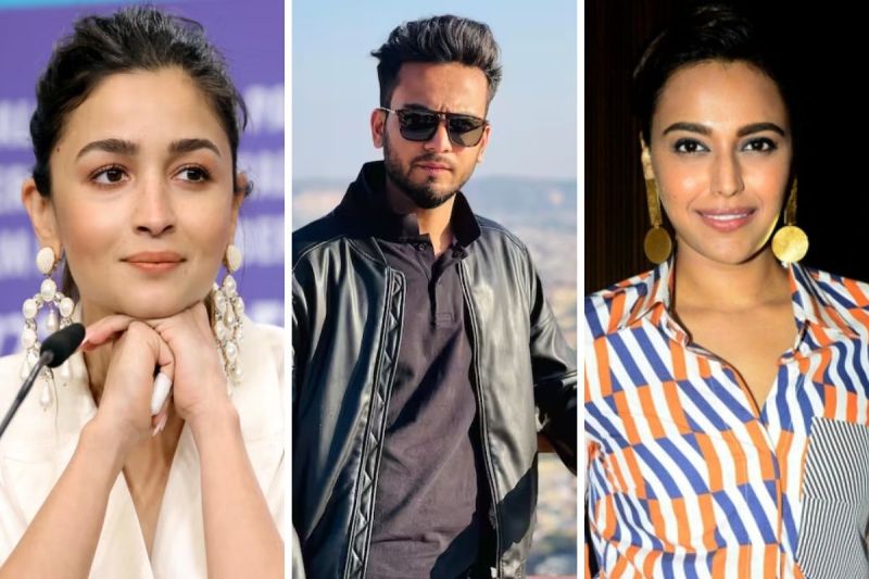 बाएं से आलिया भट्ट बीच में एल्विश यादव दाएं में स्वरा भास्कर
