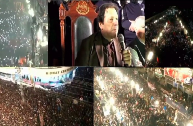 सभा में इमरान वाकिंग फ्रेम का इस्तेमाल कर मंच पर पहुंचे और बुलेटप्रूफ शीशे के पीछे से भीड़ को संबोधित किया। उन्होंने कहा कि विभिन्न सुरक्षा सूत्रों ने उन्हें बताया कि उनकी जान को अब भी खतरा है।