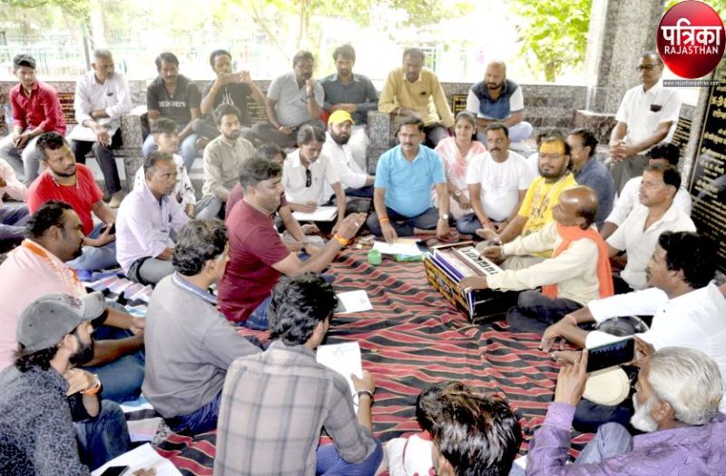 पाली के लाखोटिया महादेव मंदिर में भजन संध्या का ऑडिशन देते गायक।