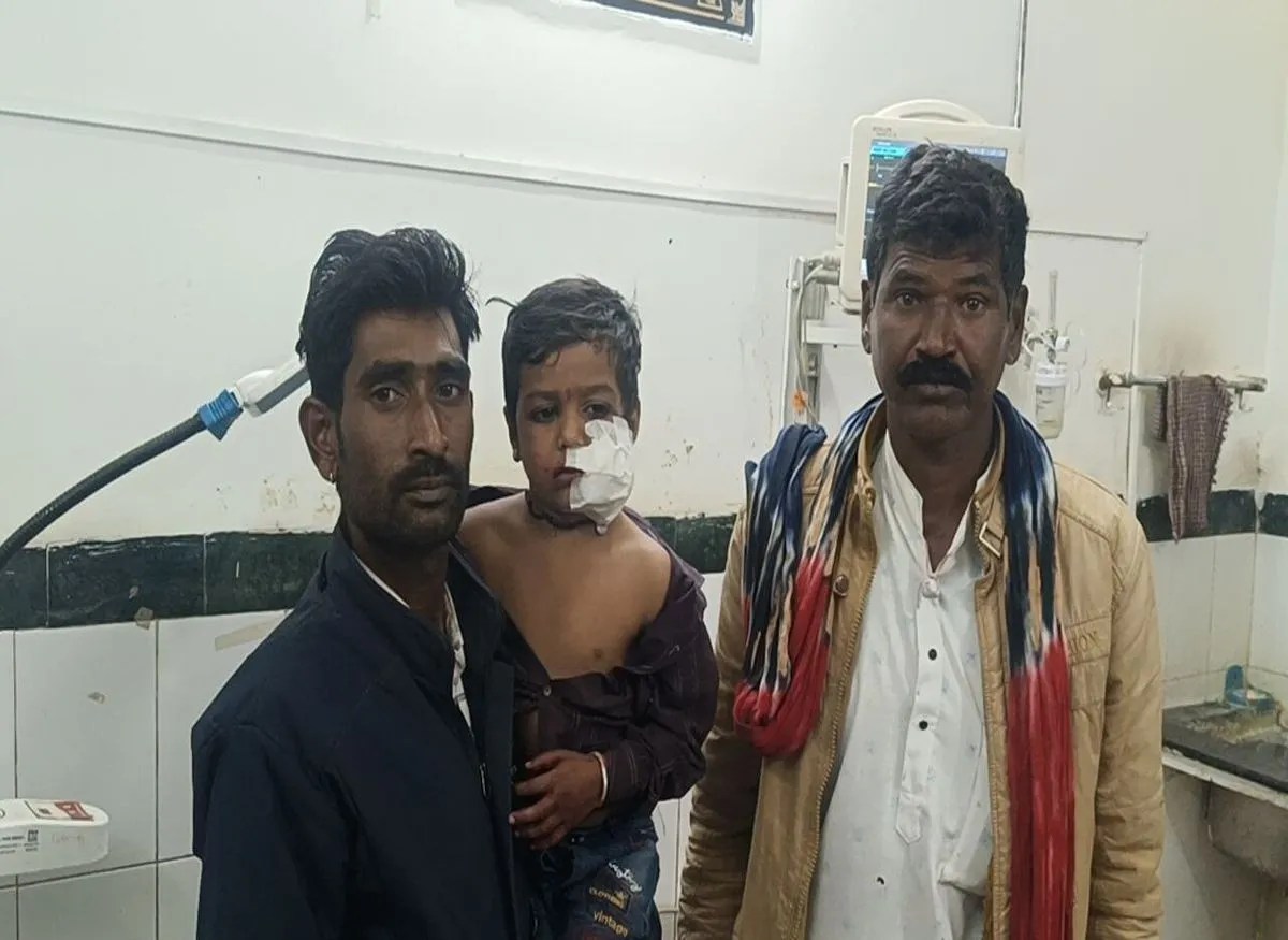अस्पताल में परिजनों के साथ घायल बालक।