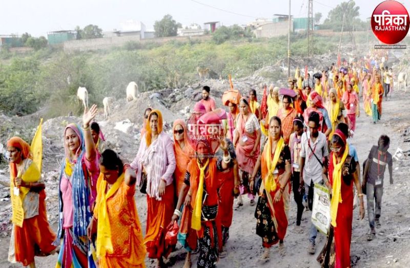 पाली शहर में निकाली गई अधिकमास नगर परिक्रमा में शामिल श्रद्धालु।