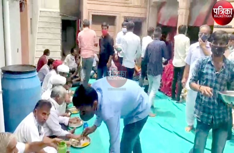 रोहट तहसीलदार प्रवीण चौधरी ने बताया कि गेलावास गांव में दो दिन पहले एक विवाह कार्यक्रम हुआ। सोमवार को परिवार ने घर में स्नेह भोज का आयोजन कर दिया। घर में सौ से अधिक लोग खाना खा रहे थे। सूचना पर मौके पर पहुंचकर देखा तो ग्रामीण बिना सोशल डिस्टेंस के भोजन कर रहे थे।