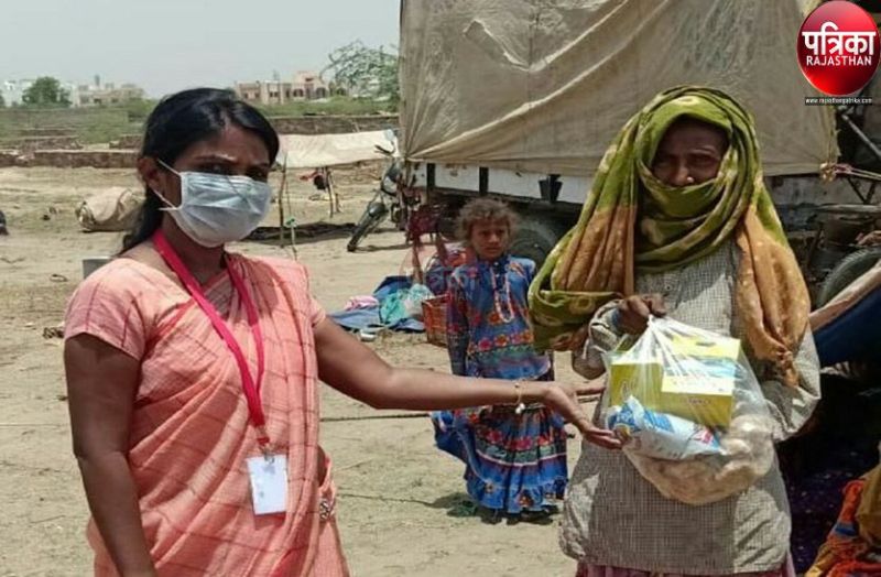 पाली। लॉकडाउन [ Lockdown ] लगने के बाद से टैगोर नगर में एक चद्दर डालकर रह रहे 125 मदारी परिवार [ Madari family ] के लोगों तक सहायता पहुंची। इस डेरे में एक प्रसूता खुले आसमान तले तपती धरती पर रह रही थी। उसका दर्द पाली की एक कर्मवीर [ Corona karmaveer ] सुमन शर्मा ने समझा और सहायता के लिए पहुंच गई।