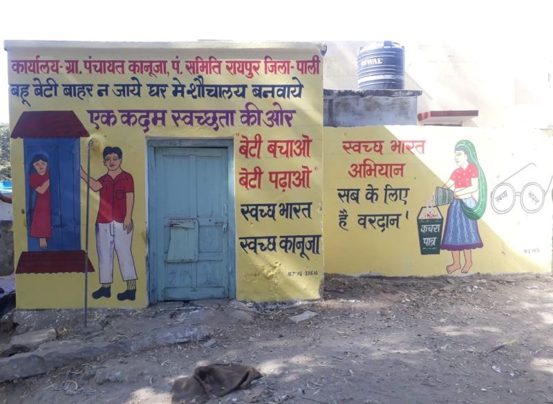 पाली। स्वच्छ भारत मिशन ग्रामीण के स्वच्छ सुंदर शौचालय कार्यक्रम के अंतर्गत जिले की सभी ग्राम पंचायतों में व्यक्तिगत व सार्वजनिक शौचालयों को चित्रकारी के माध्यम से नया कलेवर दिया जा रहा है। विभाग का यह अनूठा अभियान ग्रामीणों के बीच आकर्षण का केन्द्र बना हुआ है। शौचालयों पर चित्रकारी के साथ साथ स्व्च्छता व सुंदरता से सम्बंधित नारे व आदर्श वाक्य भी अंकित किए जा रहे है। स्वच्छता मिशन कार्यक्रम के अधिशासी अभियंता ए.के. सोनगरा के मुताबिक इस अभियान का मकसद ग्रामीणों को शौचालयों के उपयोग के प्रति जागरूक करना व ग्रामीण इलाकों में शौचालय की स्थिति को मजबूत करना है। इस अभियान के तहत जिले भर की ग्राम पंचायतों में व्यक्तिगत व सार्वजनिक शौचालयों को चित्रकारी, स्वच्छता नारे के जरिए नया कलेवर दिया गया है।