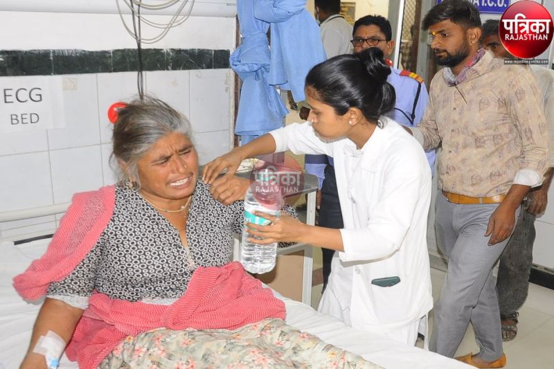 पाली के बांगड़ अस्पताल में मधुमक्खियाें के हमले में घायल हुई महिला का उपचार करती चिकित्साकर्मी।