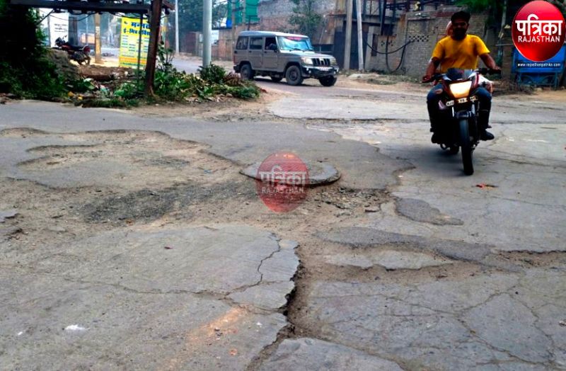पाली शहर के गुडलाइ मार्ग की क्षतिग्रस्त सड़क।