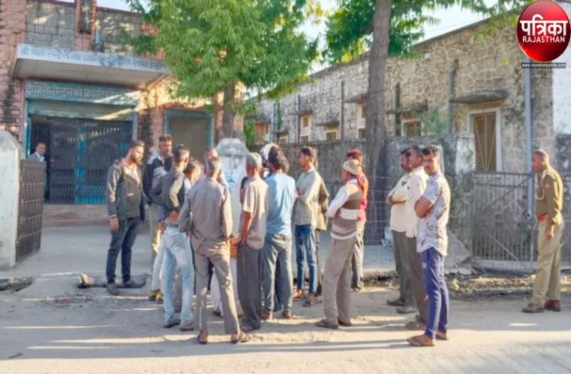 देसूरी अस्पताल की मोर्चरी के बाहर मौजूद परिजन व पुलिस।