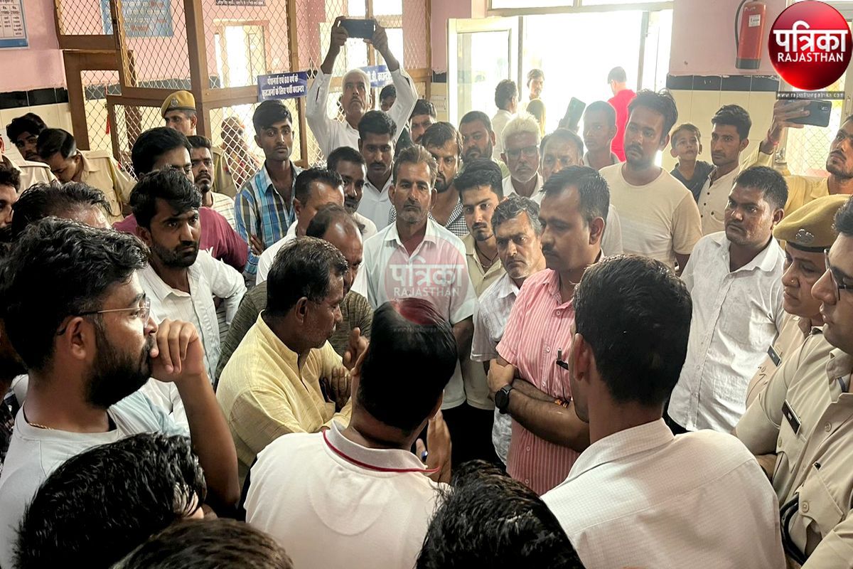 पाली जिले के रोहट क्षेत्र के सिणगारी गांव में 11 केवी लाइन से कंरट लगने से युवक की मौत हो गई। रोहट अस्पताल में आक्रोश प्रकट करते मृतक के परिजन व ग्रामीण।