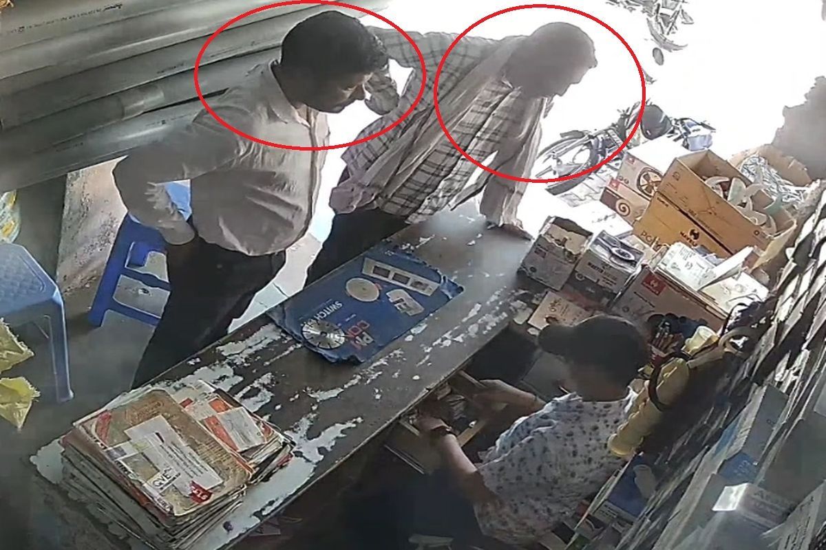 निमाज कस्बे में इलेक्ट्रिक व हार्डवेयर की दुकान पर चोरी की वारदात करते बदमाश।