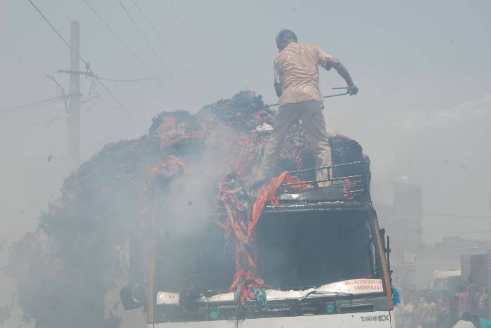 पाली. हैदर कॉलोनी में रविवार को झूलते विद्युत तारों में शॉर्ट सर्किट होने से कपड़ों की गांठों से भरे ट्रक में आग लग गई। देखते ही देखते ट्रक में भीषण आग लग गई। सूचना पर दमकलकर्मी पहुंचे और चार दमकल वाहनों के जरिए आग पर काबू पाया गया। बांडी नदी से हैदर कॉलोनी जाने वाले मार्ग से रविवार को कपड़ों की गांठों से भरा एक ट्रक निकल रहा था। इस दौरान झूलते विद्युत तारों में शॉर्ट सर्किट हो गया। इसकी चिंगारी ट्रक में भरी कपड़ों की गांठों पर गिर गई। इससे ट्रक में आग लग गई। आग से काफी गांठे जल गई।