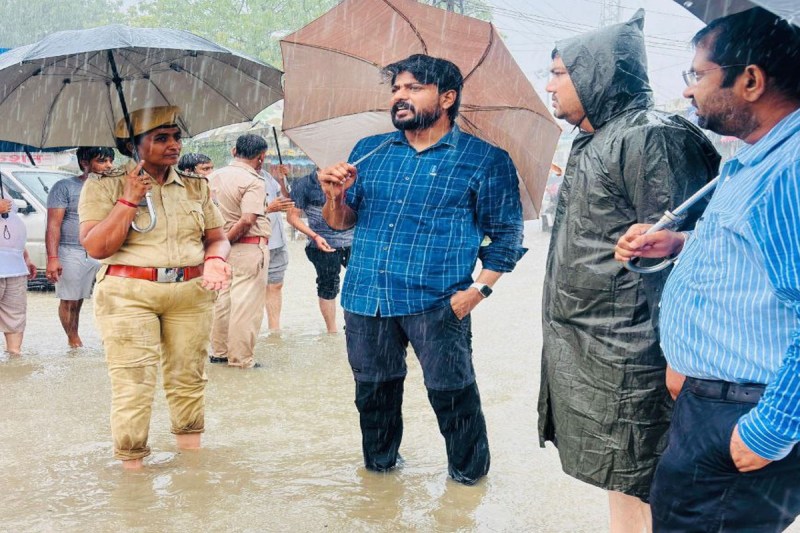 बरसात के पानी का जायजा लेते अधिकारी। फोटो- पत्रिका
