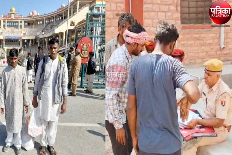 पाली के बांगड़ अस्पताल के बाहर पोस्टमार्टम की कार्रवाई करते पुलिसकर्मी। भारत-पाकिस्तान के वाघा बॉर्डर से बाहर आता गेमराराम मेघवाल का फाइल फोटो
