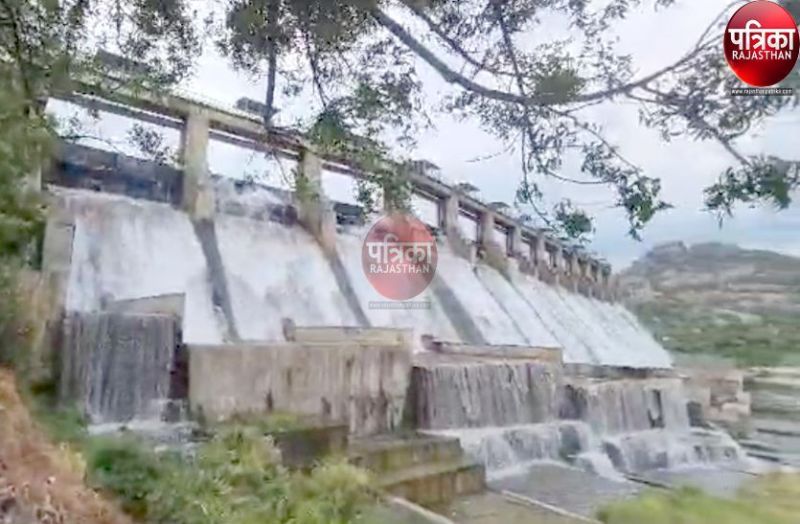 जवाई बांध के फाटकों के ऊपर से छलकता पानी