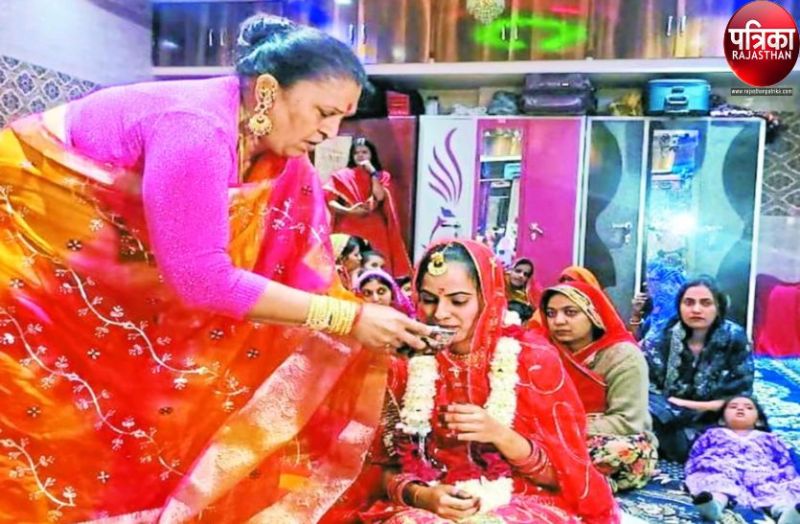 बेटी के पाट बिठाई की रस्म करवाती किन्नर गादीपति आशा कुंवर।