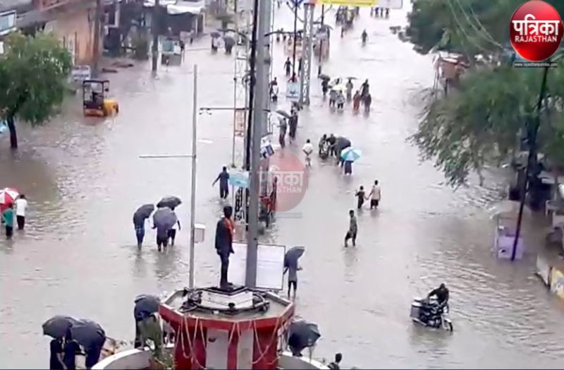 पाली. पिछले 24 घंटे में पाली पर इन्द्र जमकर मेहरबान हुए। शुक्रवार शाम तक 13.4 इंच बारिश होने से शहर में बाढ़ जैसे हालात हो गए। कई कॉलोनियां जलमग्न है। सडक़ और रेल यातायात बाधित रहा। जम्मू तवी के यात्रियों को रोडवेज बसों से अहमदाबाद भिजवाया गया। एक महिला समेत चार जनें नदी-नालों में बह गए। महिला का शव निकाल लिया गया। शेष तीनों की तलाश की जा रही थी। दो लोगों को डूबने से बचा लिया गया। जिले के 9 बांध ओवर फ्लो हो गए तथा जवाई में पानी की आवक तेजी से हो रही है। अगले 24 घंटे में मौसम विभाग ने बारिश का अलर्ट जारी किया है। इस कारण जिला कलक्टर ने शनिवार को निजी व सरकारी स्कूलों में अवकाश घोषित किया है। पर्यटन स्थल माउंट में भी शुक्रवार को 118 एमएम बारिश हुई।