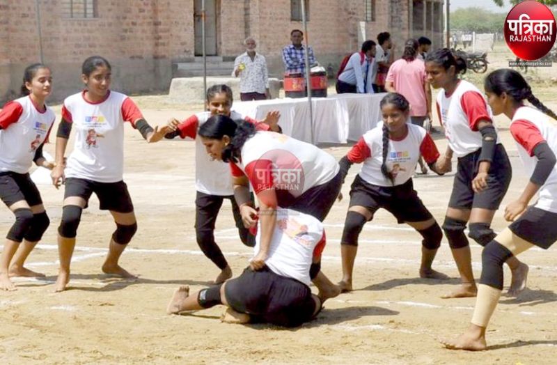 पाली के बांगड़ स्टेडियम में चल रही कबड्डी प्रतियोगिता में दमखम दिखाती खिलाडी