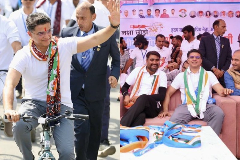 Rajasthan Politics: राजस्थान में नशे के खिलाफ जन-जागरूकता बढ़ाने के लिए एनएसयूआई के प्रदेशाध्यक्ष विनोद जाखड़ की ओर से 'नशा छोड़ो, जीवन जोड़ो' साइकिल यात्रा का आयोजन किया जा रहा है। इस यात्रा में एआईसीसी महासचिव व पूर्व उपमुख्यमंत्री सचिन पायलट सोमवार को पाली से शामिल हुए।