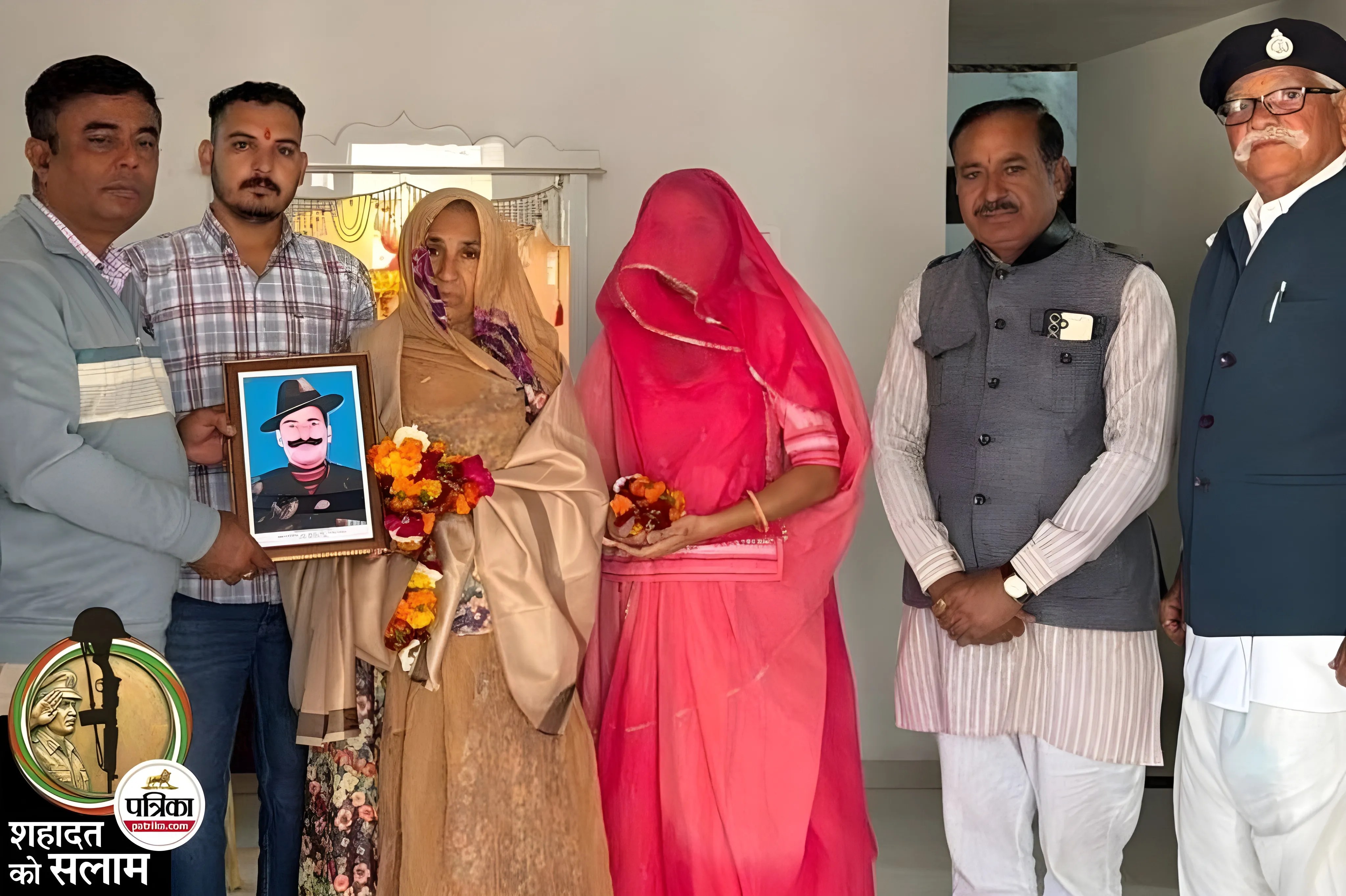 राजस्थान पत्रिका के शहादत को सलाम कार्यक्रम के तहत गुरुवार को शिवगंज उपखंड अधिकारी नीरज मिश्र, भाजपा जिला उपाध्यक्ष नरपत सिंह राडबर, शहीद के ससुर रूप सिंह देवड़ा, पत्रिका के हम्मीर सिंह राव, प्रियवृत सिंह राव ने वीरांगना गुलाब कंवर, पुत्रवधू हीना कंवर, पुत्र जसवंत सिंह का माल्यार्पण कर, शॉल ओढाकर और स्मृति चिह्न भेंट कर सम्मान किया।