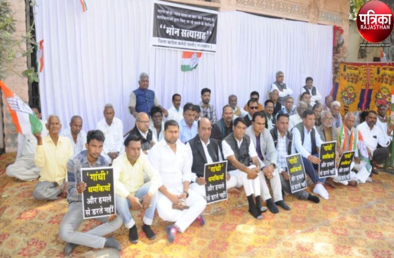 पाली के गांधी मूर्ति सर्किल के निकट कांग्रेस का मौन सत्याग्रह।