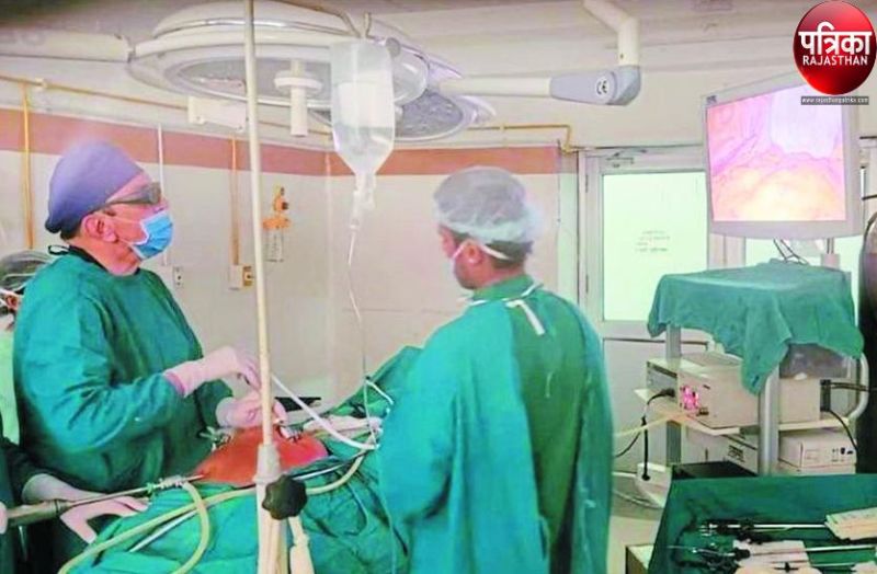 पाली के बांगड़ अस्पताल में पहली बार 3-डी तकनीक से सर्जरी करते चिकित्सक