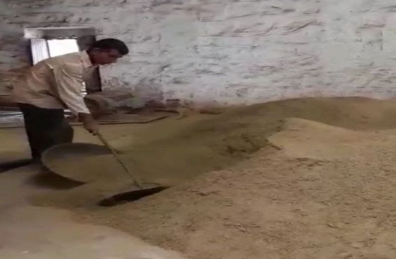 सोजत में मेहंदी तैयार करता श्रमिक।