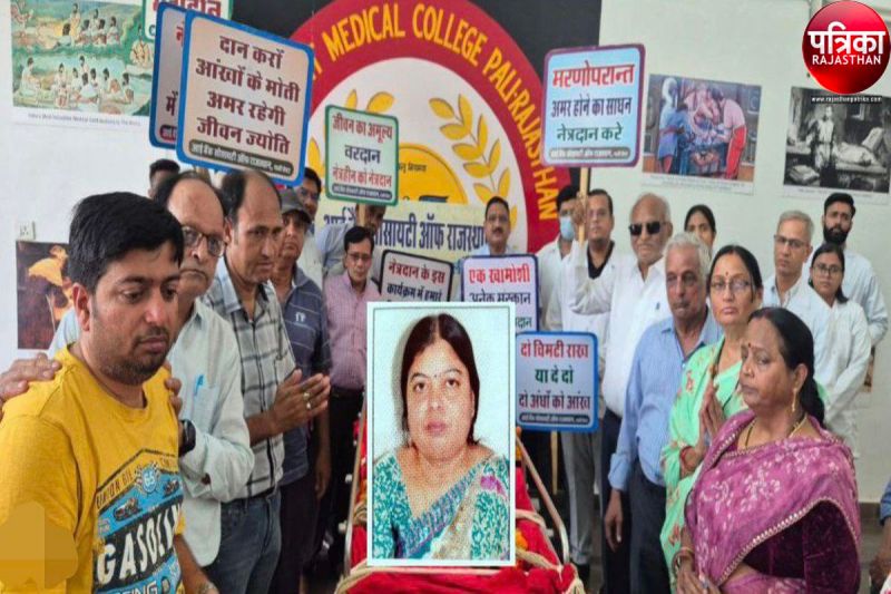 आई बैंक सोसायटी ऑफ राजस्थान पाली चेप्टर सचिव केवलचंद कवाड़ ने बताया कि अध्यक्ष हुक्मीचंद मेहता व डॉ. निरेन गर्ग ने मंजू देवी के पुत्र मोहित, सुरभित माथुर से नेत्रदान व देहदान करवाने का आग्रह किया। स्वीकृति पर भंवरलाल सेमलानी, गौतमचंद रांका, हेमन्त चौपड़ा, डॉ. आरके. गर्ग, आई तकनीशियन मुकेश चारण, सहायक महिपालसिंह राठौड़ की सहायता से नेत्रों को दान में प्राप्त कर जयपुर भिजवाया गया। इसके बाद मंजू देवी की देह का मेडिकल कॉलेज में दान किया गया।