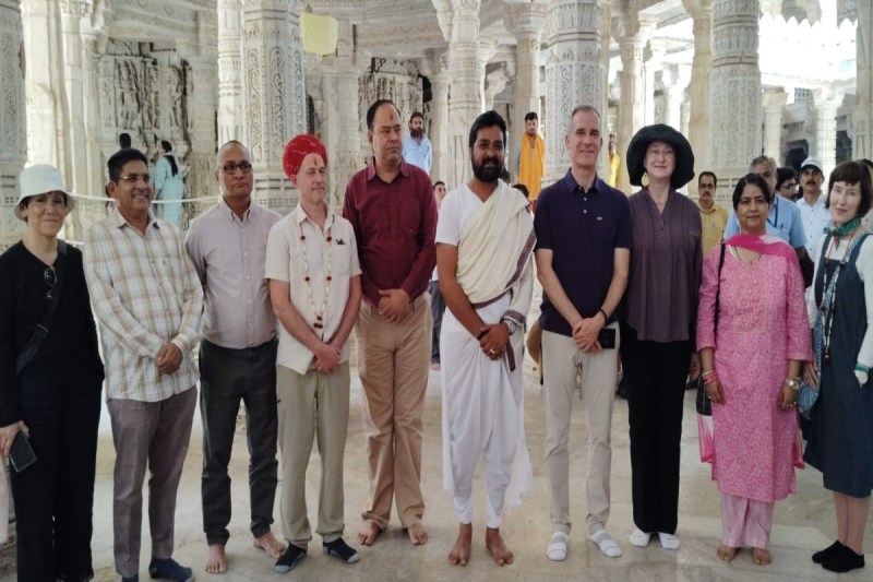 Rajasthan News : भारत में अमरीकी राजदूत एरिक एम गासेंटी, अपनी पत्नी, बच्ची व मेहमानों के साथ रणकपुर जैन मंदिर पहुंचे। यहां भगवान आदिनाथ की पूजा अर्चना कर मन्दिर शिल्प कलाकृति का अवलोकन किया। हर अविस्मरणीय पल को मोबाइल कैमरे में कैद किया।