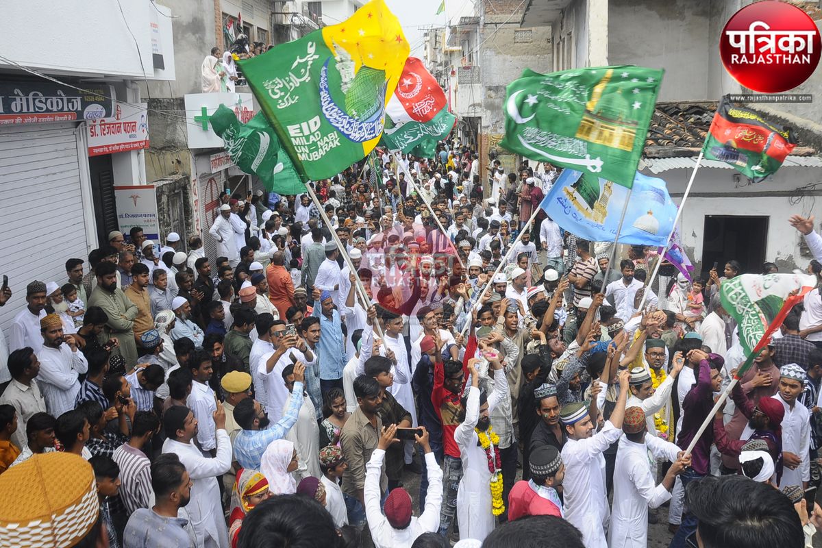 पाली शहर में ईद मिलादुन्नबी पर निकाले गए जुलुस में शामिल मुस्लिम समुदाय के लोग।