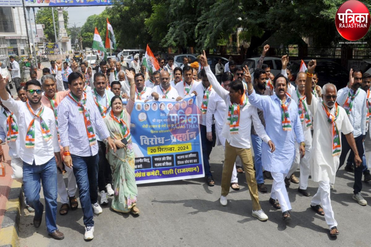 Congress Protest in Pali : कांग्रेस के पदाधिकारियों व कार्यकर्ताओं ने शुक्रवार को पाली के कलक्ट्रेट के बाहर प्रदर्शन कर नाराजगी जताई।
