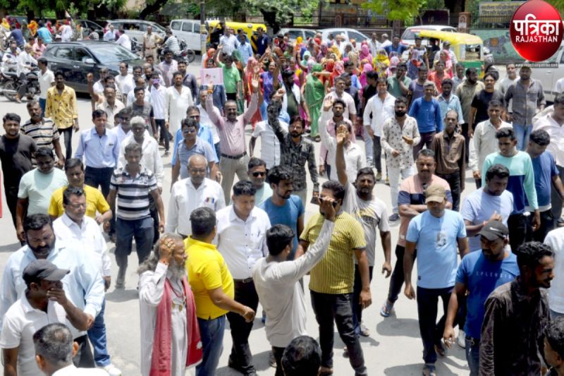 पाली में हड़ताल के चलते कलक्ट्रेट के बाहर प्रदर्शन करते सफाई कर्मचारी।