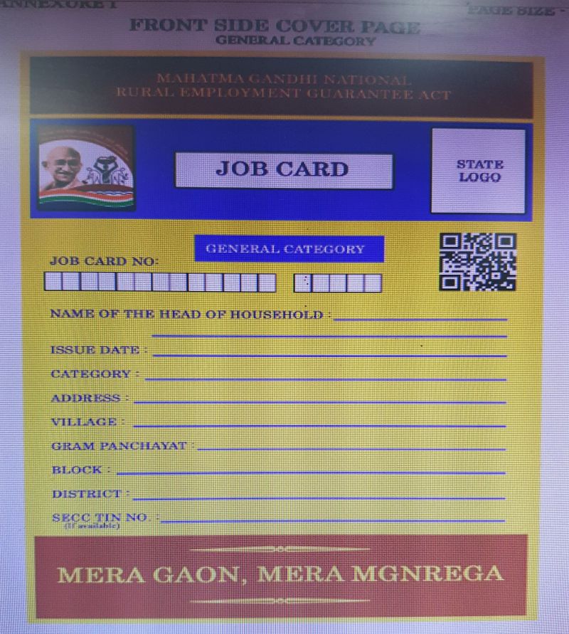 मंत्रालय की ओर से तय किए गए फॉरमेट में योजनार्तंगत दो तरह के जॉब कार्ड दिए जाएंगे। पहला सामान्य श्रेणी का तो दूसरा विशेष श्रेणी का होगा। महात्मा गांधी नरेगा अधिनियम 2005 की अनुसूची 2 के पैरा 1 में वर्णित एकल महिला, निशक्त व्यक्ति, वृद्ध व्यक्ति, छोड़ा गया बंधुआ श्रमिक व विशिष्ट दुर्बल जनजाति विशेष श्रेणी में शामिल है। जॉब कार्ड का पहला पेज ग्लोसी पेपर पर छपेगा, जिसमें सामान्य श्रेणी के लिए नीली और विशेष श्रेणी के लिए हरी पट्टी होगी। इसके अंदरूनी पेज पर परिवार की जानकारी होगी। कवर के अंतिम पेज पर संबंधित जिलों के अधिकारियों के नम्बर होंगे। पूरा जॉब कार्ड बीस फोल्डेड शीटों का होगा।