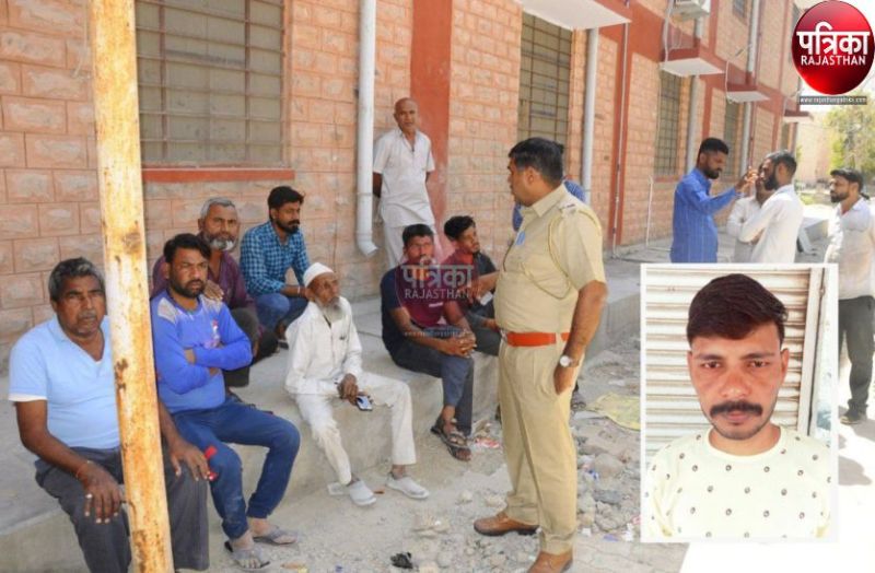 पाली के बांगड़ अस्पताल की मोर्चरी के बाहर पहुंचे मृतक के परिजनों से चर्चा करते पुलिसकर्मी।