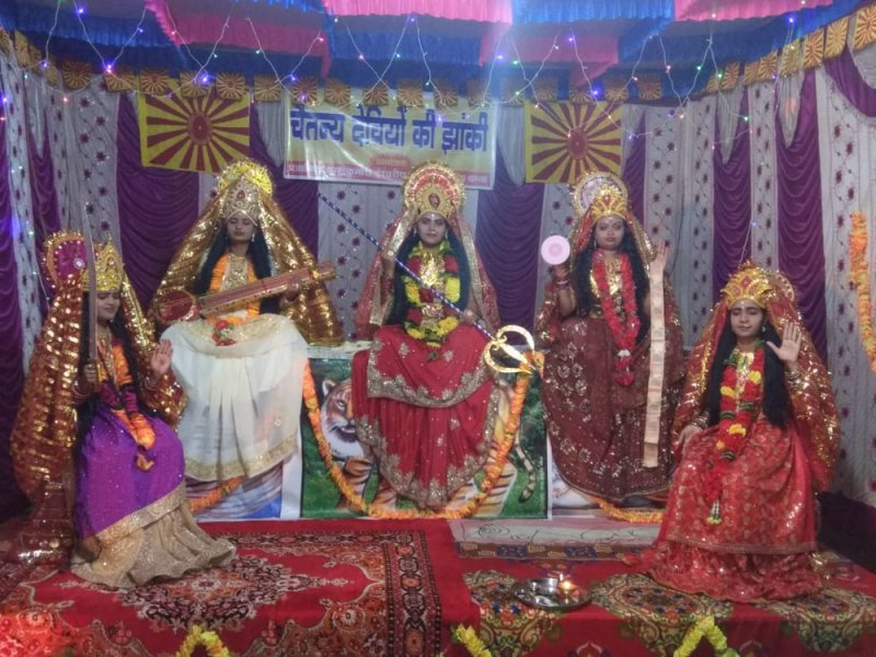 पन्ना। प्रजापिता ब्रह्माकुमारी ईश्वरीय विवि के स्थानीय आश्रम की ओर से पवई में चैतन्य देवियों की झांकी लगाई गई। जिसमें सीता बहन ने देवियों का आध्यात्मिक रहस्य बताया। उन्होंने बताया, नवरात्रि क्या है? नौ देवियों का अवतरण काल नवरात्रि कहलाता है, माता-बहिनों को भी अपने साथ आसुरी शक्तियों के विनाश और दैवी शक्तियों के विकास के लिये सहभागी बनाते हैं।