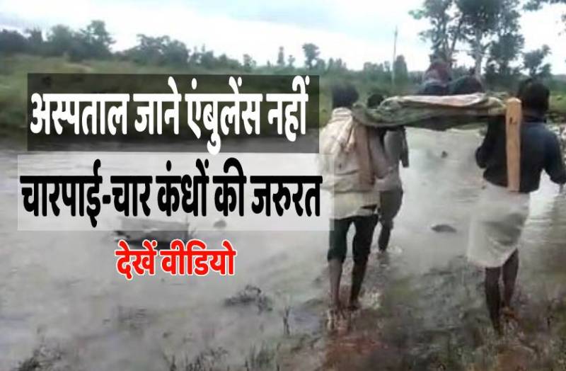 विकास के तमाम दावों की पोल खोलने वाली तस्वीरें पन्ना जिले की रैपुरा तहसील के कंचनपुरा गांव की हैं। बारिश के कारण दलदल हो चुकी सड़क और नाले पर पुल का निर्माण न हो पाने के कारण बारिश में गांव के लोग किन हालातों में अपनी जिंदगी गुजारते हैं इसे इस बात से समझा जा सकता है कि यहां बारिश में अगर कोई बीमार पड़ जाए तो उसे अस्पताल ले जाने के लिए एंबुलेंस नहीं बल्कि चार पाई और चार कंधों की जरुरत होती है। बीते दिनों गांव में रहने वाले बबलू धुर्वे की तबीयत बिगड़ी तो परिजन उसे चारपाई पर लिटाकर करीब चार किलोमीटर पैदल ही कीचड़ भरे रास्ते से होते हुए नाला पार अस्पताल लेकर पहुंचे तब कहीं बीमार युवक का इलाज शुरु हो पाया। बीमार मरीज को खाट पर लिटाकर इलाज के लिए ले जाने का ग्रामीणों का वीडियो अब सोशल मीडिया पर वायरल हुआ है जो विकास के दावों की पोल खोल रहा है।