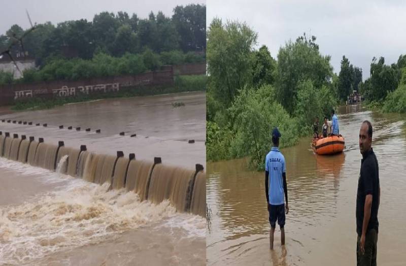 मध्यप्रदेश के पन्ना जिले में बिगत तीन दिन से भारी बारिश का दौर चल रहा है।जिससे जिले के सभी नदी नाले उफान पर है। नदी नालों के पुलों के ऊपर से पानी बह रहा है। जिससे दर्जनों का गांवों का संपर्क टूट गया है। गंभीर मामला पन्ना जिले के समाना गांव से सामने आया है।जहां ब्रेनहेमरेज मृत युवक शव परिजन गांव ले जा रहे थे। लेकिन पुल के उपर से पानी व गांव के आसपास जलभराव के कारण युवक का शव गांव नही पहुँच पा रहा था। परिजन घंटो तक सड़क किनारे शव को रखे रहे है। जिसे एसडीआरएफ की टीम ने मौके पर पहुँचकर नांव से युवक के शव को गांव तक पहुँचाया।