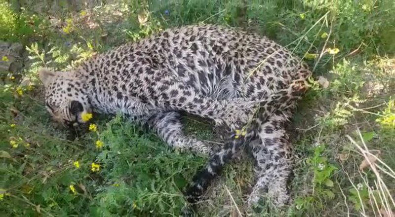 खेत में संदिग्ध परिस्थितियों में मिला तेंदुए का शव।