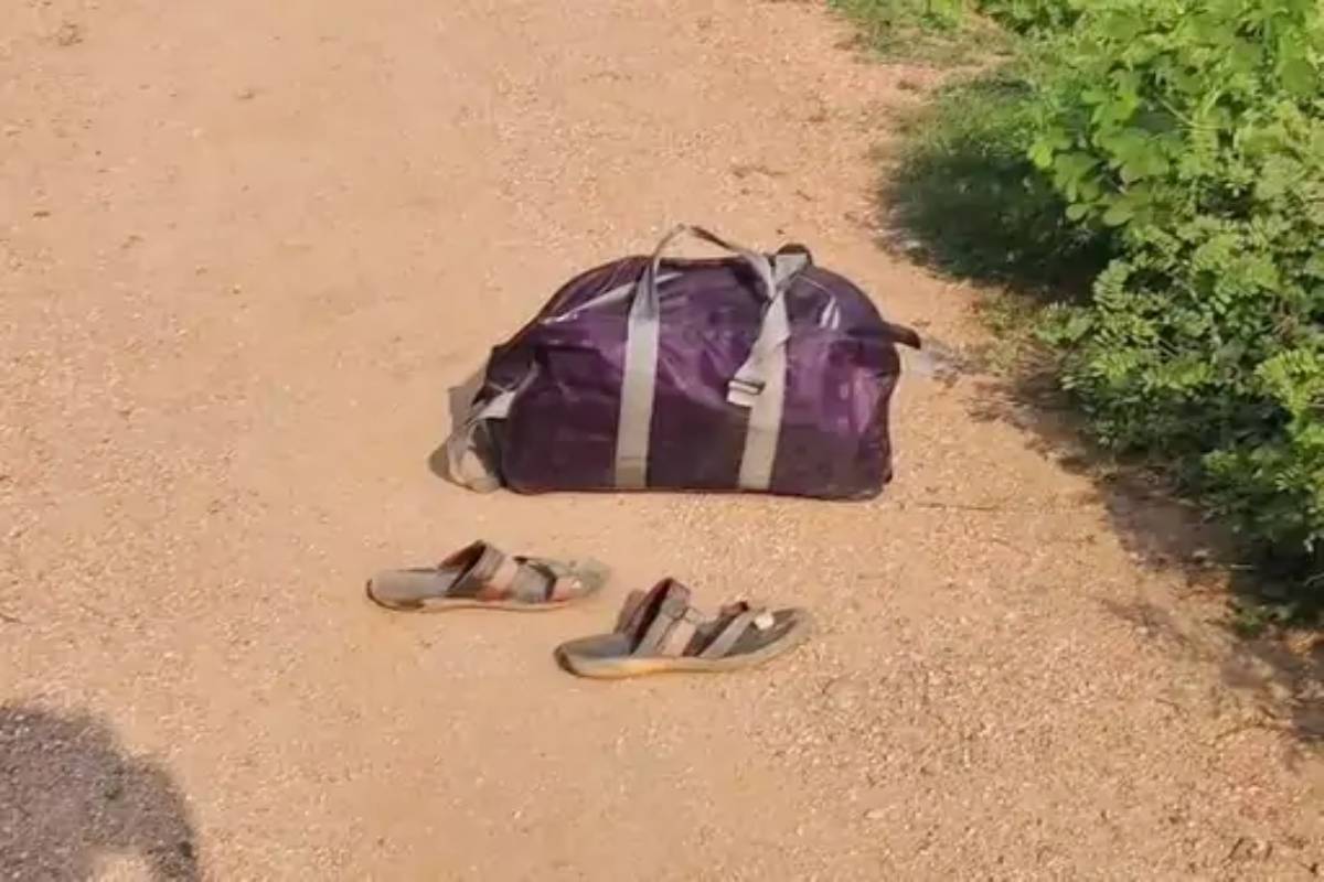 तालाब के पास रखी महिला की चप्पल और उसका बैग..