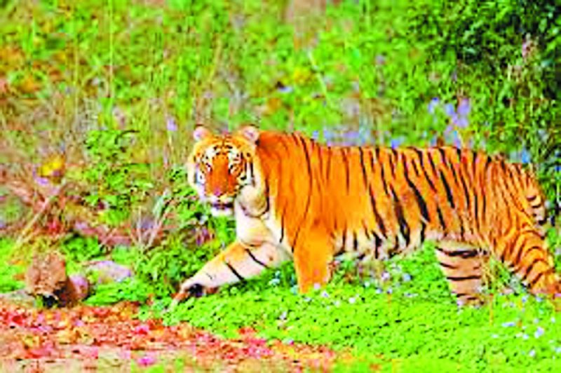 पन्ना। पन्ना टाइगर रिजर्व के कोर जोन से निकल कर बफर जोन में बाघों का लगातार आने जाने का सिलसिला जारी है। एक बार फिर मडियादो बफर जोन से लगे किशनगढ़ बफर के जंगल में एक बाघ कैमरे में ट्रैप हुआ है। इसके अलावा एक बाघ दमोह जिले के ही राईपुरा के जंगल में भी होने की बात वन विभाग द्वारा बताई जा रही है। क्षेत्र में लगातार बाघों की मौजूदगी से लोगों में दहशत का माहौल है।