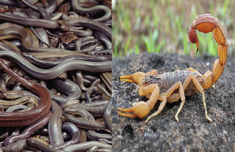गौरतलब है कि संाप और बिच्छू बिल बनाकर जमीन के अंदर रहते हैं। बारिश होने से इनके घरौंदों में पानी भर जाता है। इससे वे अपने-अपने बिलों से निकलकर सुरक्षित ठिकाना तलाशते भटकते रहते हैं। किसी व्यक्ति के द्वारा उनके आस-पास पहुंचने पर रक्षा के लिए हमला कर देते हैं। जिलेभर से सांप के डसने और बिच्छू के डंक के शिकार लोग अस्पतालों में बढ़े हैं।