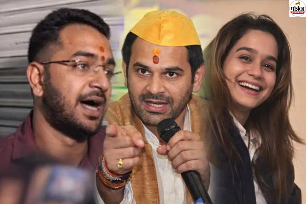 आकाश- तेज प्रताप यादव- अनुष्का यादव । फोटो- AI
