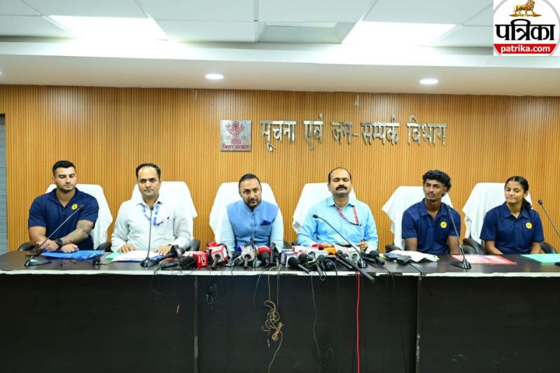 पत्रकारों से बात करते खेल विभाग के अपर मुख्य सचिव बी राजेंदर। फोटो- आईपीआरडी