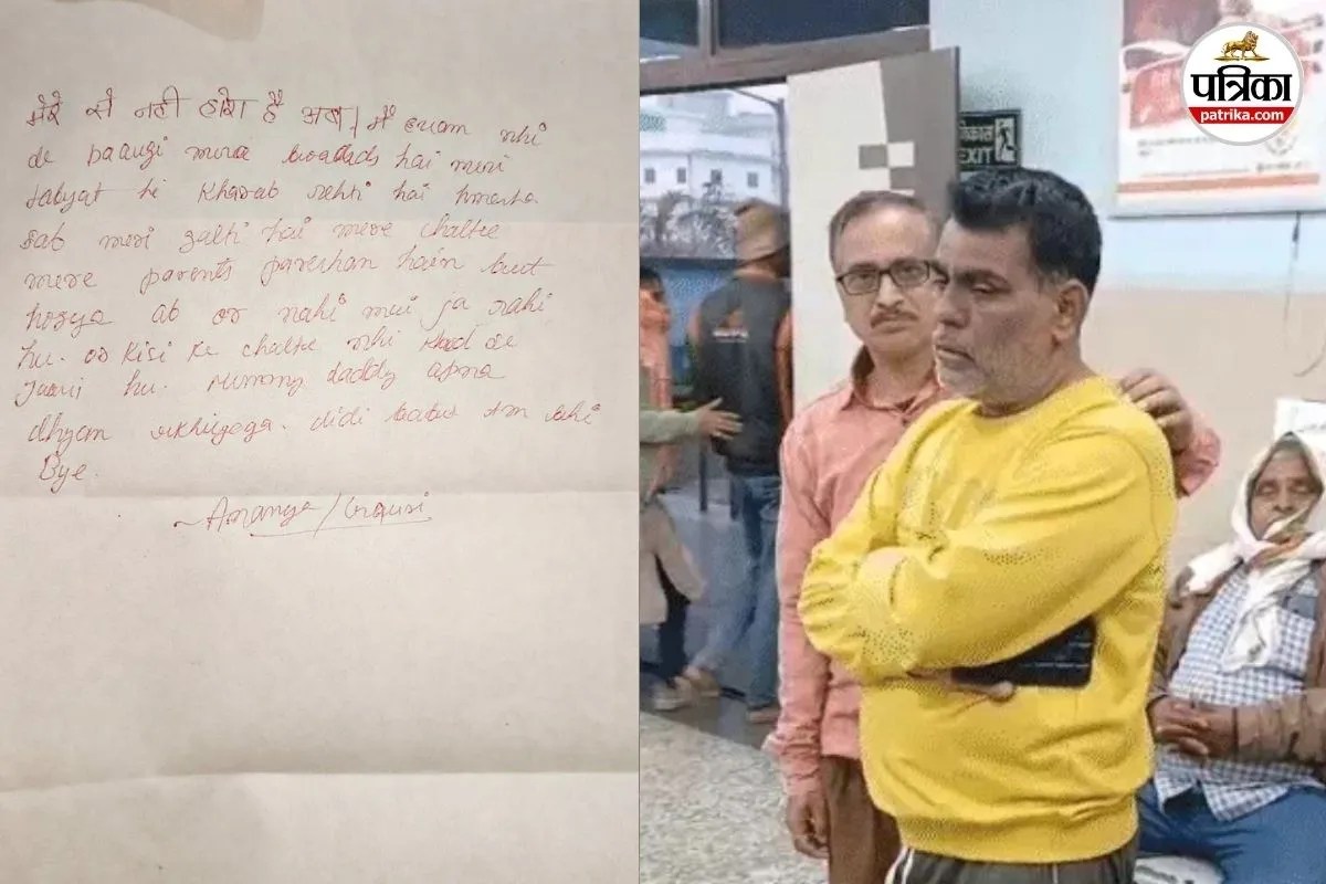 सुसाइड नोट और छात्रा के परिजन (फोटो-पत्रिका)
