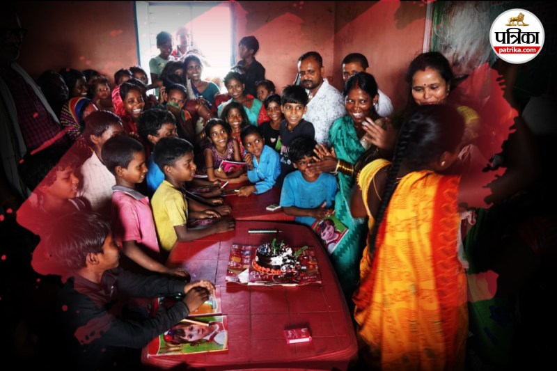लालू का बर्थडे केक काटकर सेलिब्रेट करते बच्चे। पत्रिका