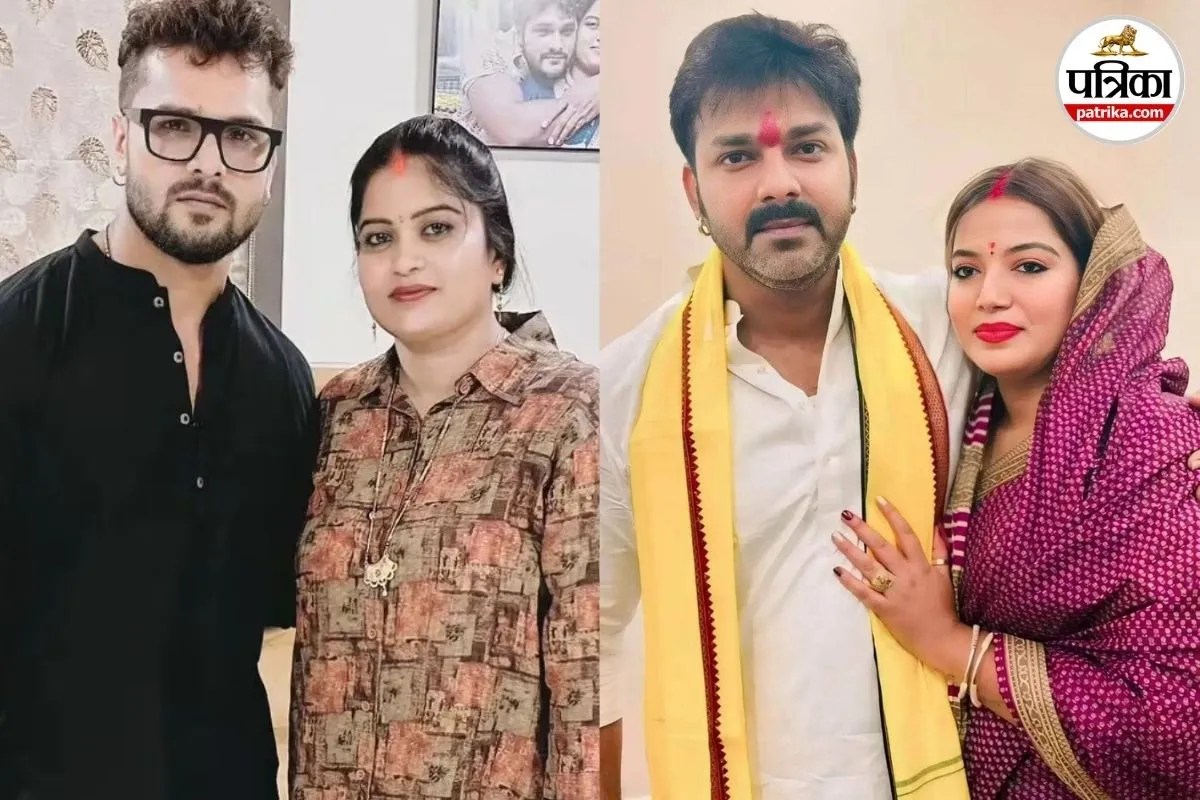 अपनी अपनी पत्नियों के साथ खेसारी लाल यादव और पवन सिंह