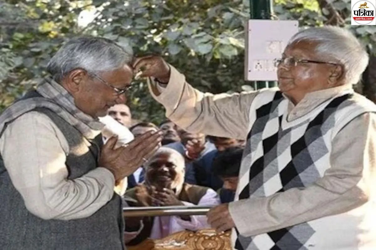 दही-चूड़ा भोज में नीतीश कुमार को तिलक लगाते लालू प्रसाद। फाइल फोटो