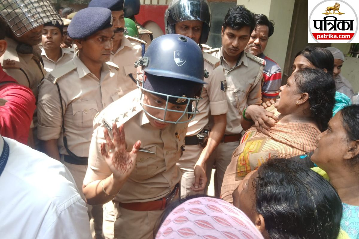 सरकारी स्कूल में छात्रा को जिंदा जलने पर आक्रोशित लोगों को समझाती पुलिस। फोटो- पत्रिका